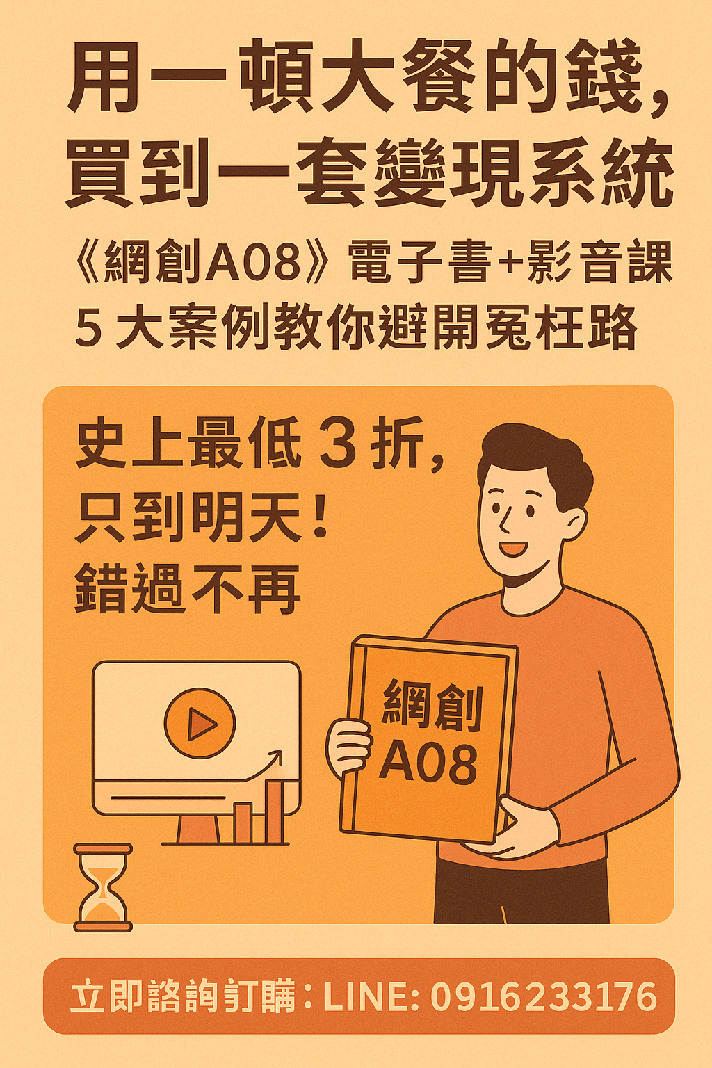 (直接詢問「A08曙光方案」,即可快速完成訂購,啟動你的知識變現之旅。)