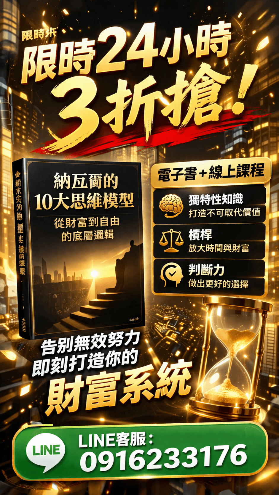 即日起24小時內,限時3折! 用不到一頓大餐的價格,換取一套改變人生的思維系統。